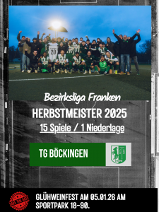 Die Fußballabteilung der Turngemeinde Böckingen darf sich über einen ganz besonderen Erfolg freuen: Unsere Mannschaft ist Herbstmeister 2025 in der Bezirksliga Franken!